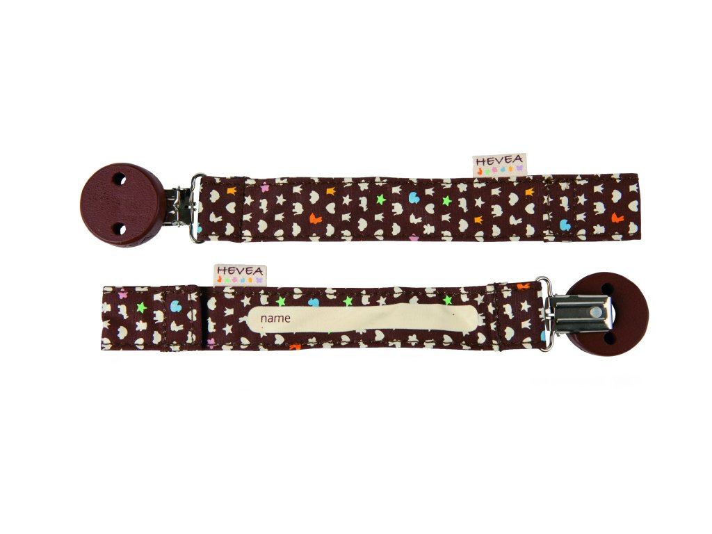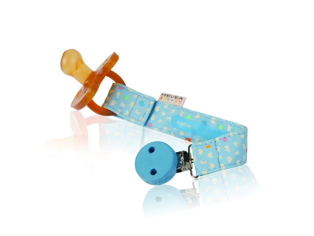 HEVEA držátko předchází drobným nehodám kousátek a dudlíků vašich děti, jako je jejich spadnutí na zem a jejich následné ušpinění či dokonce ztracení. Je navrženo s praktickým prostorem, umístěným na zadní straně, pro vepsání jména vašeho dítěte.